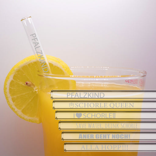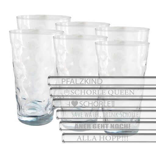 Dubbeglas - Glastrinkhalme 6er Pack optimal für Dubbegläser(mit Gravur 6 verschiedene Motive)