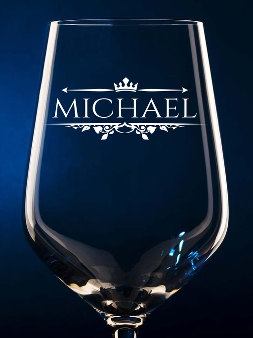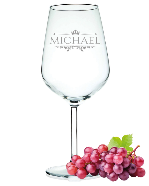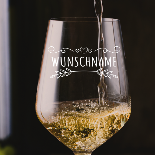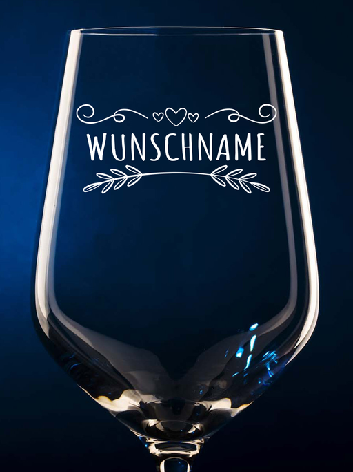 Weinglas mit graviertem Wunschname und Verzierung